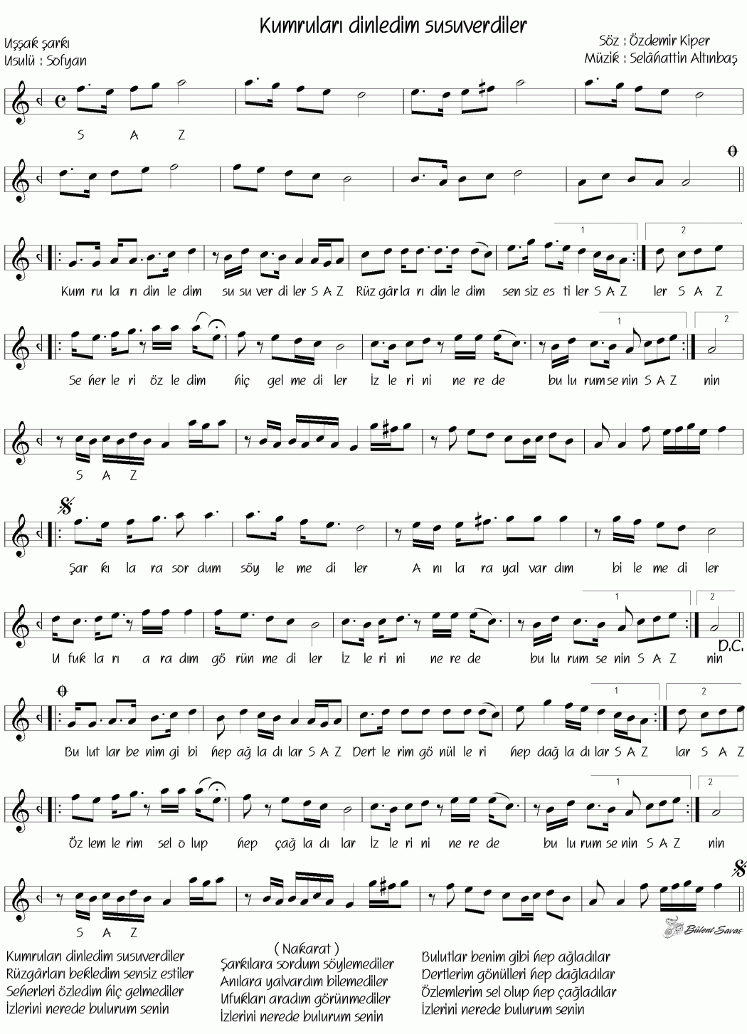 Kumrulari Dinledim Susuverdiler Notalar Sozleri