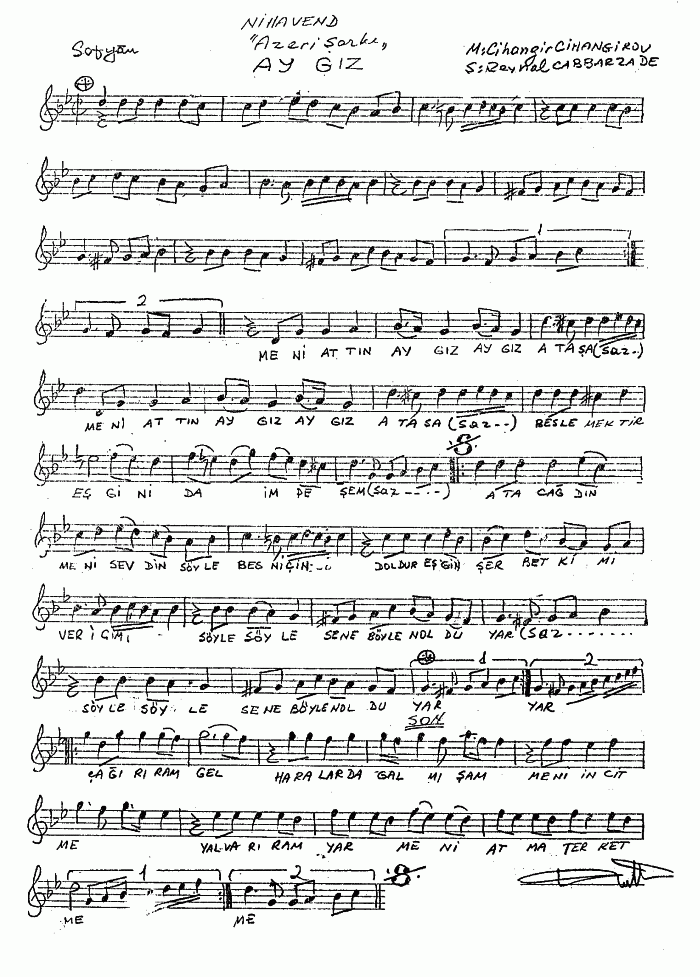 Meni Attin Ay Giz Ay Giz Atasa Notalar Sozleri