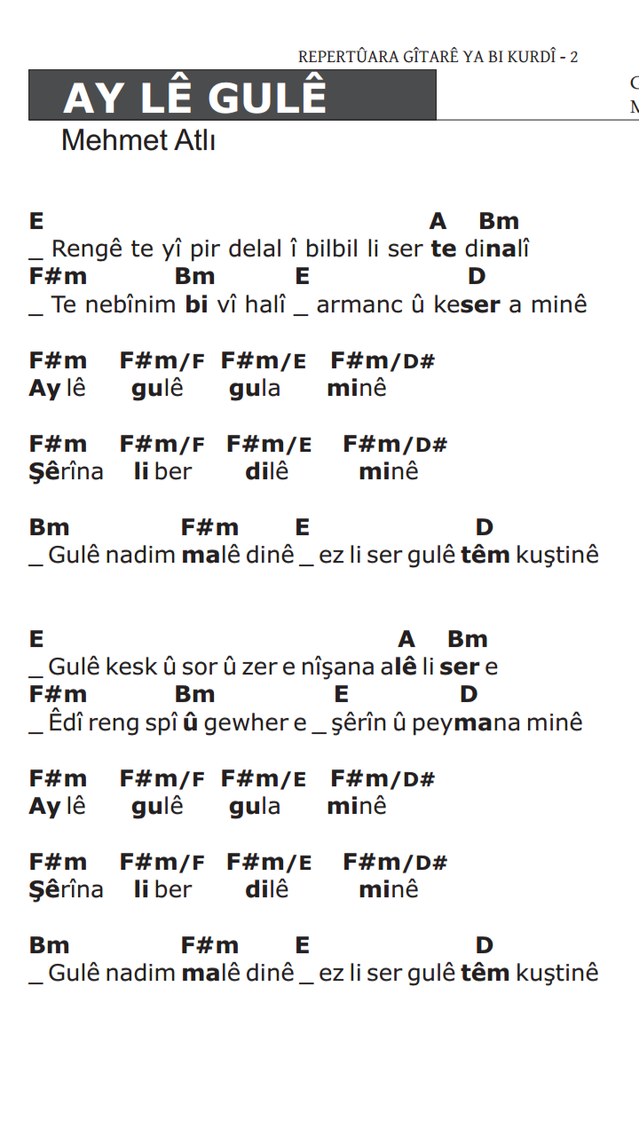 Mehmet Atli Ayle Gule Sarki Sozu Kurtce Sarki Sozu