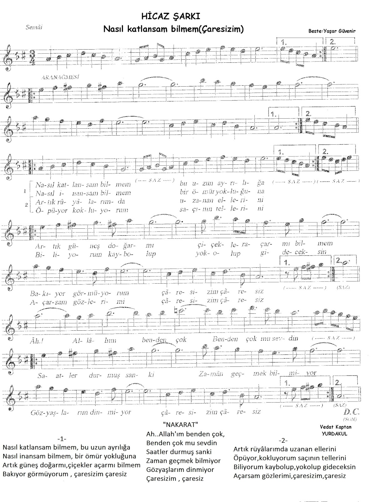 Caresizim Caresiz Yasar Guvenir Notalar Sozleri
