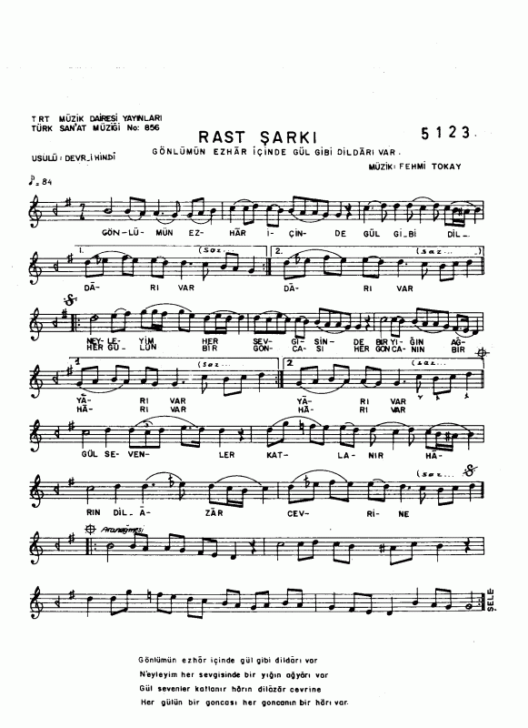 Gonlumun Ezhar Icinde Gul Gibi Dildari Var Notalar Sozleri