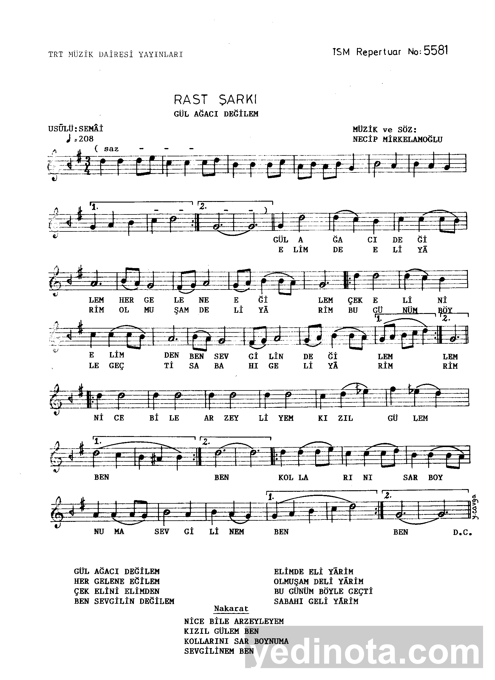 Gul Agaci Degilem Her Gelene Egilem Notalar Sozleri