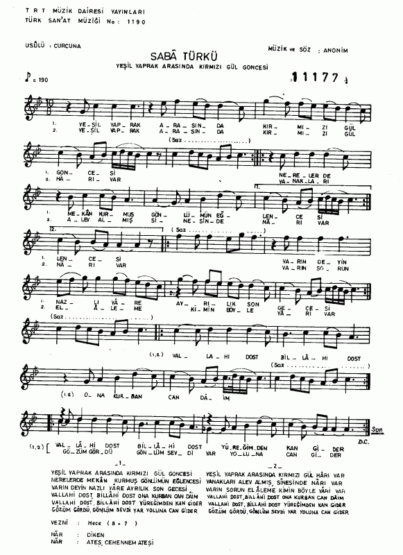 Yesil Yaprak Arasinda Kirmizi Gul Goncesi Notalar Sozleri