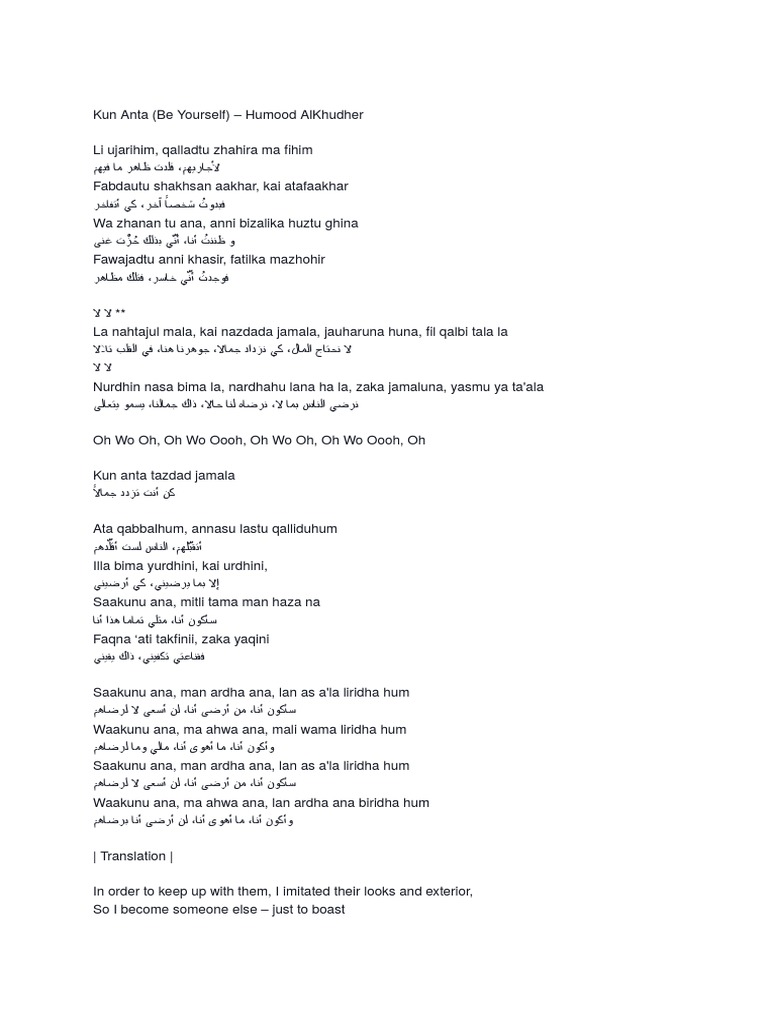 Humood Alkhudher Kun Anta Lyrics Letssingit Lyrics