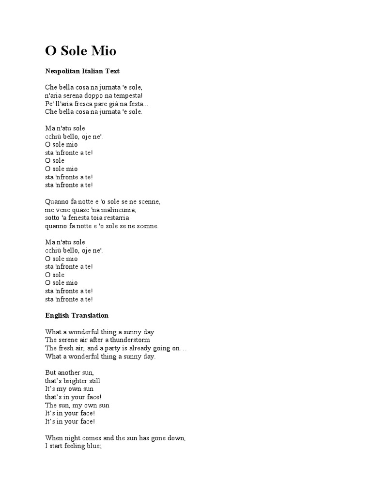 O Sole Mio Lyrics English Translation Lyrics English Gefuhle
