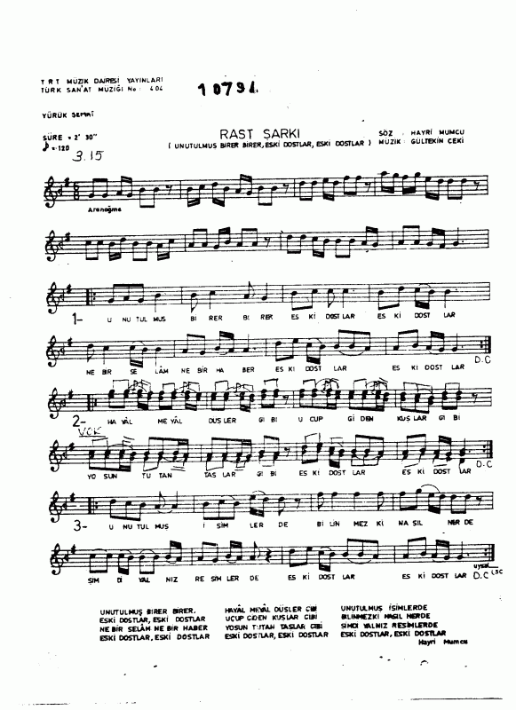Eski Dostlar Notalar Sozleri