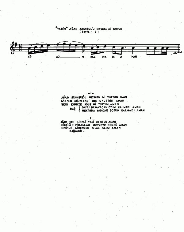 Yarim Istanbul U Mesken Mi Tuttun Turku Notasi